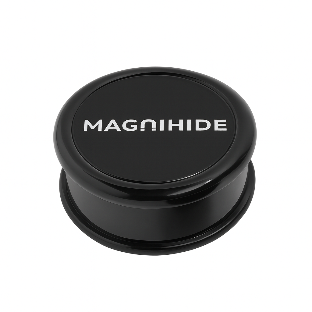 The Magnihide Grinder is a compact, premium 3-piece magnetic grinder designed to work perfectly with The Magnihide storage system. Built with a smooth, durable finish and a strong internal magnet, it delivers reliable performance while maintaining the clean, discreet MAGNIHIDE look.